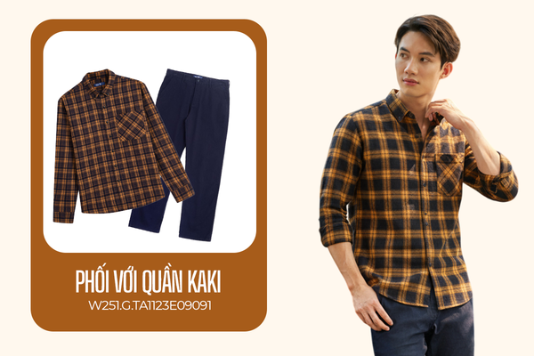 Quần kaki là một sự lựa chọn hoàn hảo khi bạn muốn tạo phong cách lịch lãm nhưng vẫn thoải mái. Áo kẻ caro kết hợp với quần kaki sẽ giúp bạn trở nên nổi bật trong các buổi gặp gỡ bạn bè hay những buổi tiệc nhỏ. Nên chọn những chiếc quần kaki có màu sắc tương phản nhẹ nhàng với áo để tạo sự hài hòa.