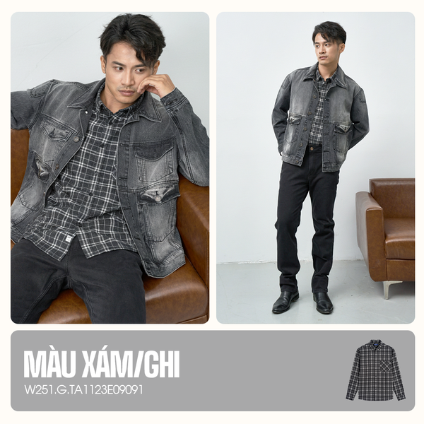 - Hoặc chọn áo khoác xám tro, sơ mi, quần jean vintage – công thức chuẩn “bụi bặm” cho nam giới.