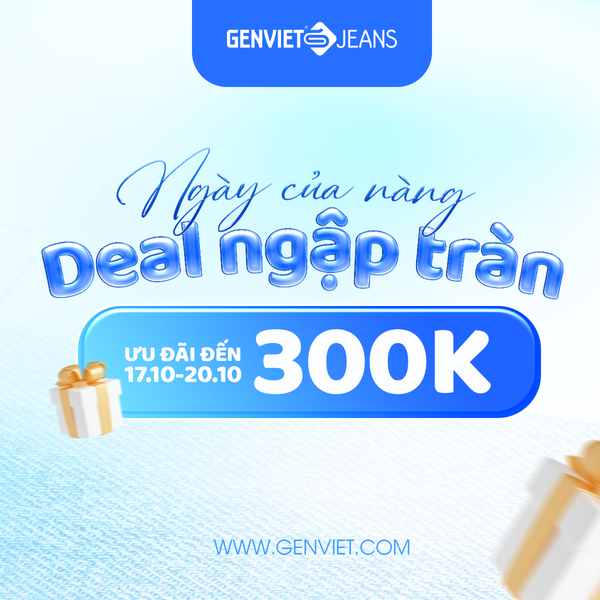 Tháng 10 – tháng của những đóa hoa và nụ cười rạng rỡ, là dịp để tôn vinh vẻ đẹp và những đóng góp thầm lặng của người phụ nữ Việt. Nhân dịp Ngày Phụ Nữ Việt Nam 20-10 và với mong muốn gửi gắm lời tri ân chân thành, GENVIET JEANS mang đến chương trình ưu đãi đặc biệt mang tên “NGÀY CỦA NÀNG – DEAL NGẬP TRÀN”, như một món quà dành riêng cho phái đẹp trong mùa yêu thương này.