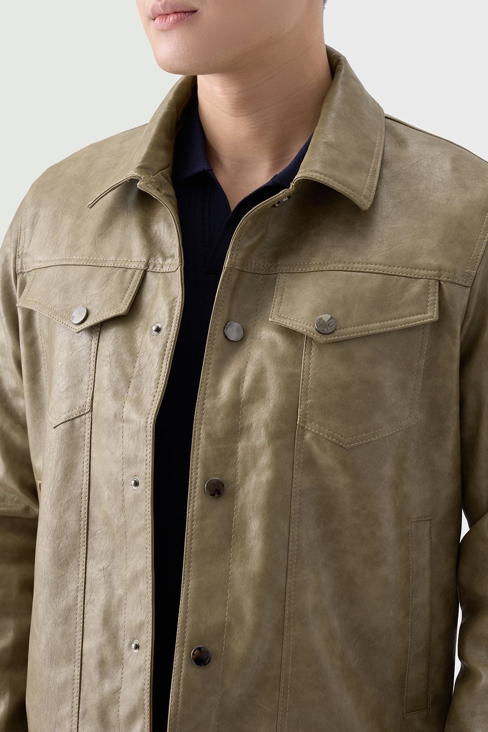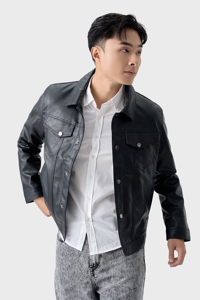 Áo khoác nam sử dụng chất liệu da PU cao cấp với bề mặt mềm, độ bóng mờ sang trọng, mang lại cảm giác gọn gàng nhưng không cứng áo. Form suông giúp mặc thoải mái cả ngày, không bó vai, không gò người khi di chuyển. Thiết kế theo tinh thần Trucker khỏe khoắn, dễ phối đồ, phù hợp với nam giới yêu thích phong cách nam tính, chỉn chu nhưng vẫn năng động.