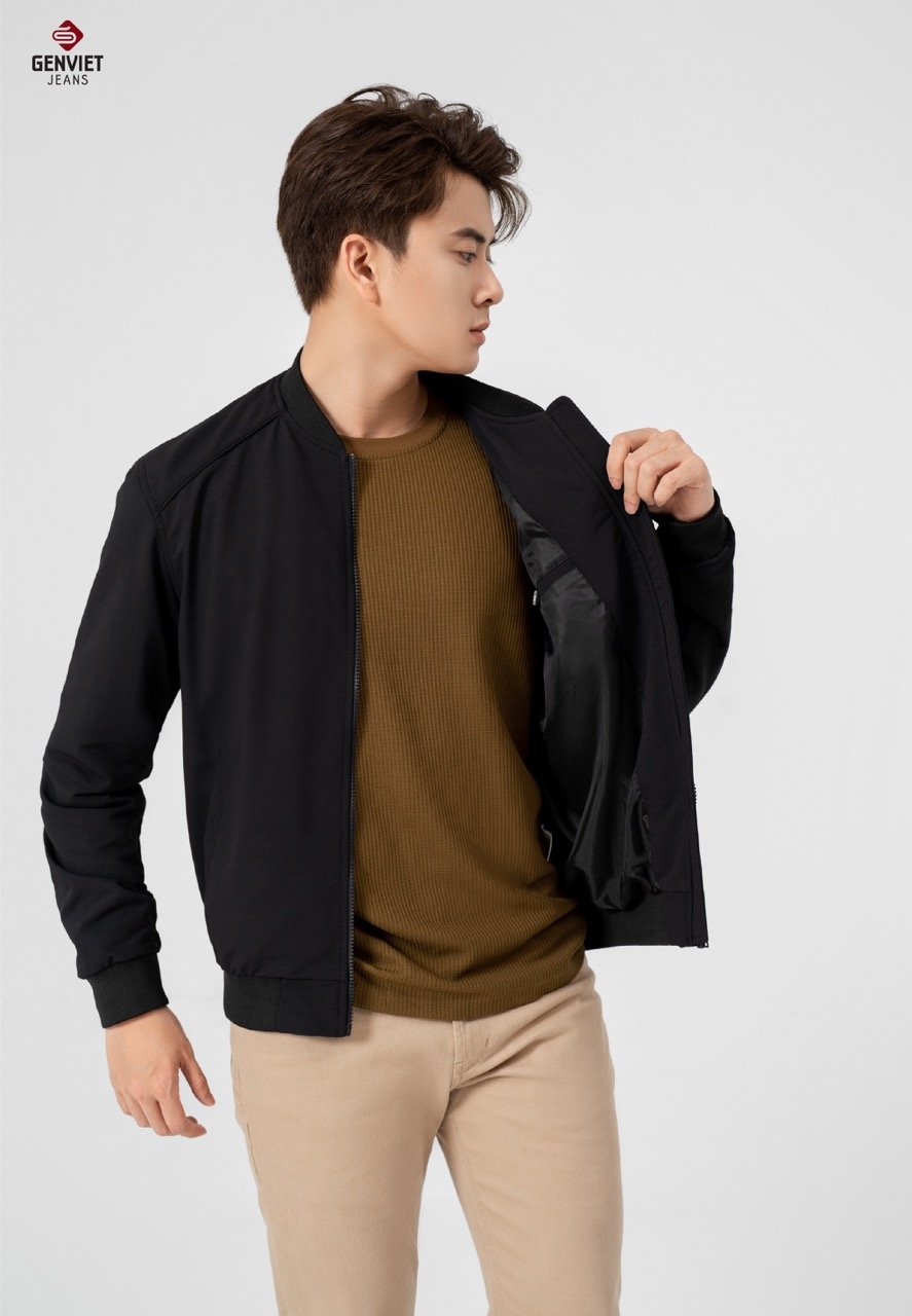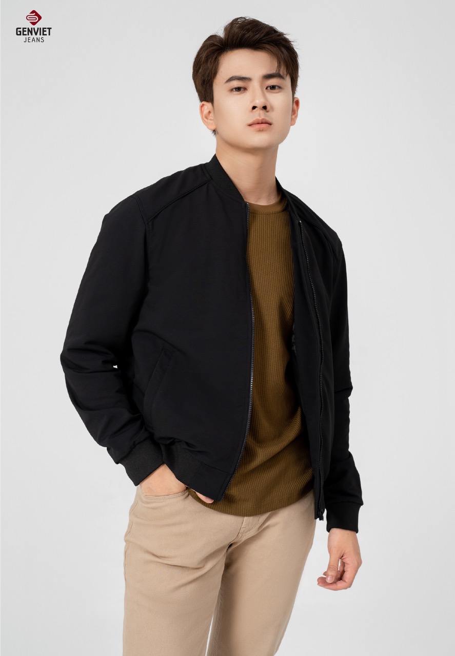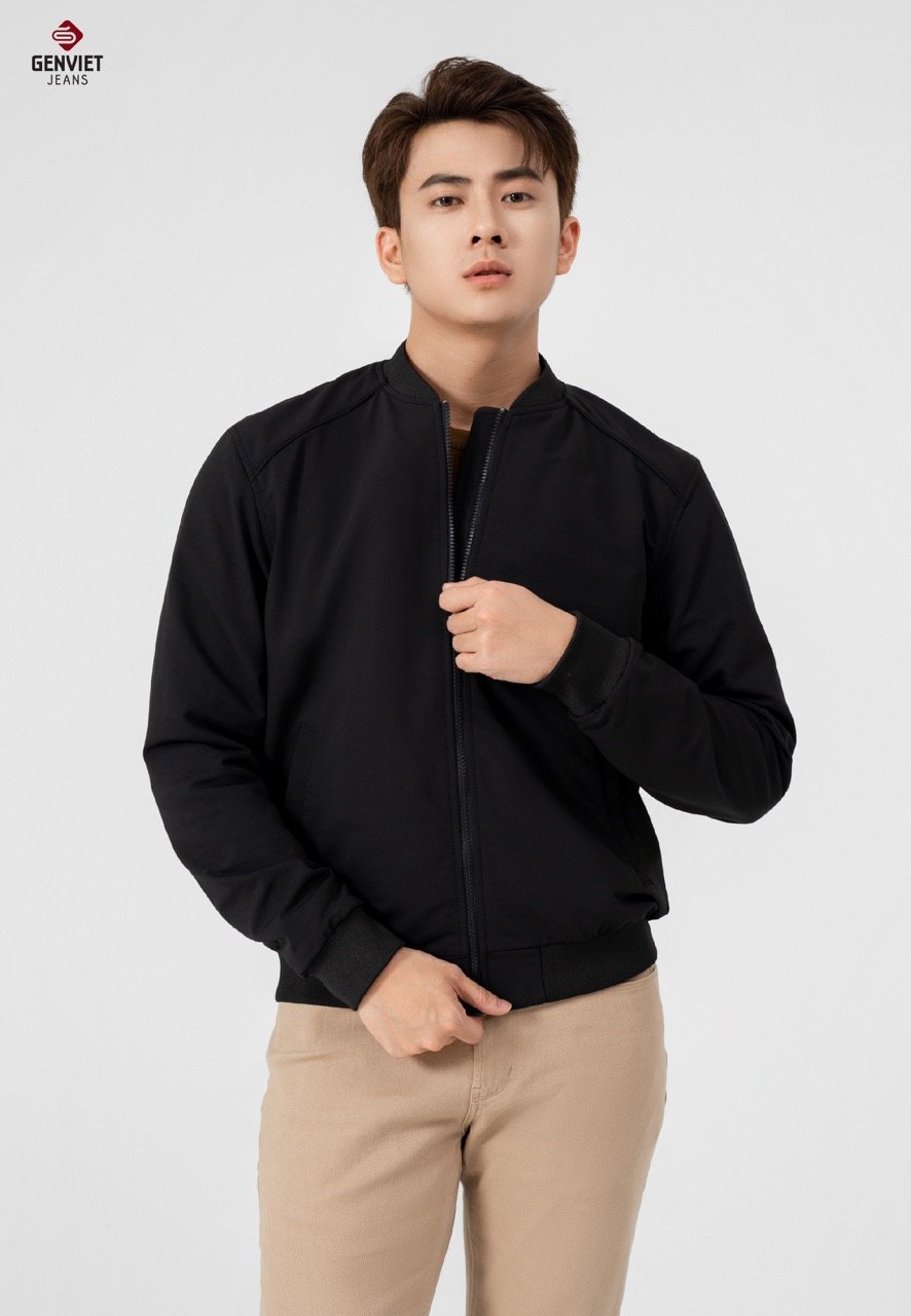 - Chi tiết thiết kế: kiểu dáng cơ bản của form áo bomber, làm mới sản phẩm bởi chất liệu gió mặt vải sần khỏe, dày dặn."
