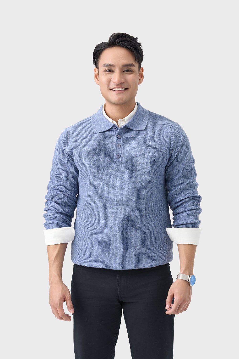 Áo polo len dài tay nam – Len lông cừu dệt mịn