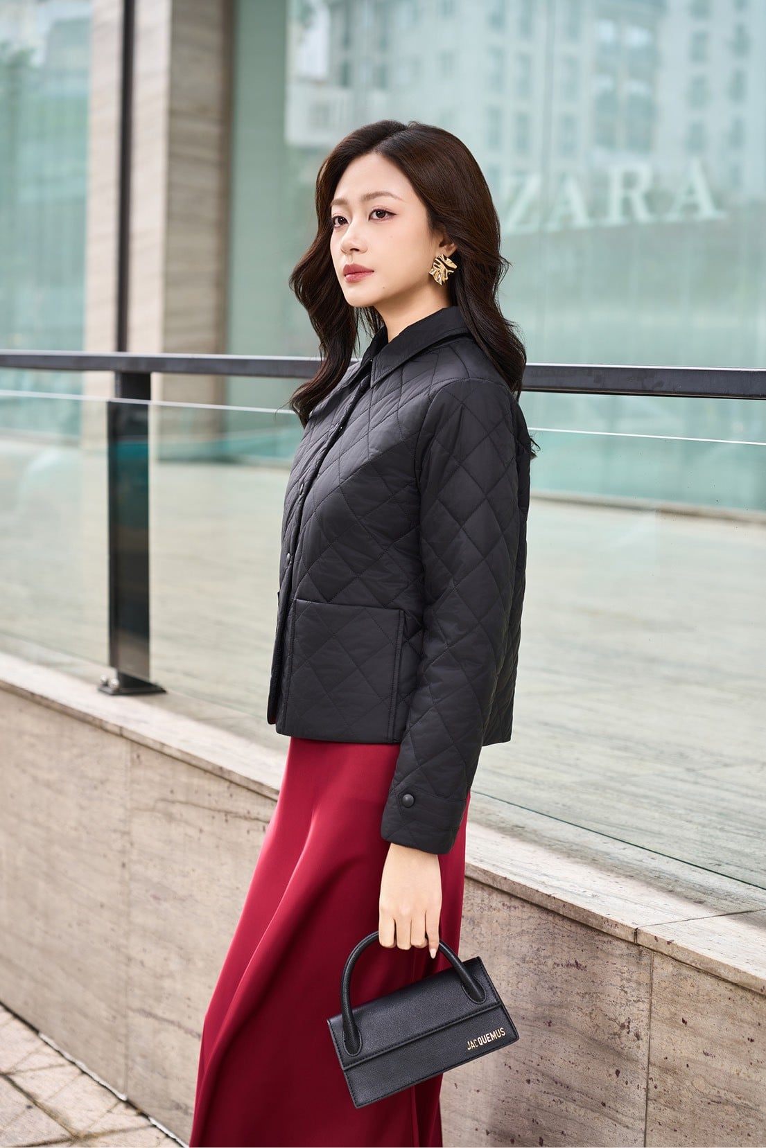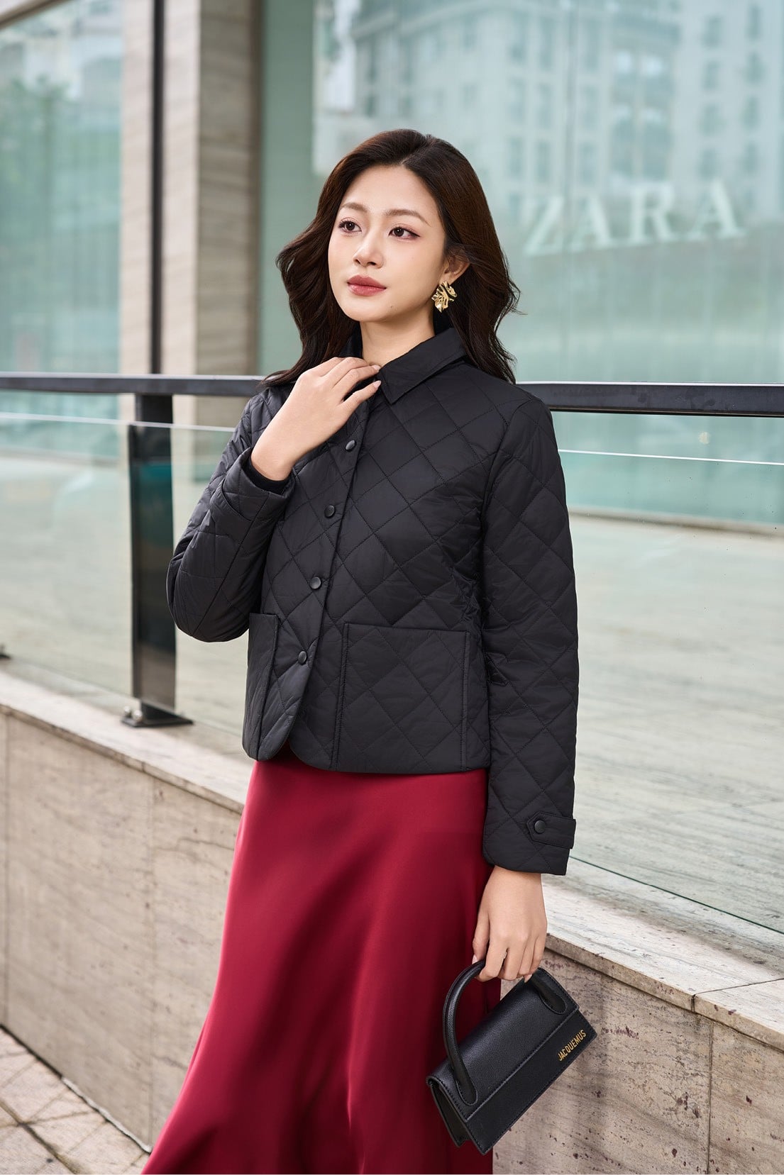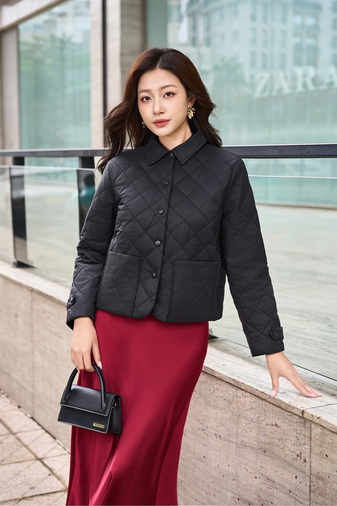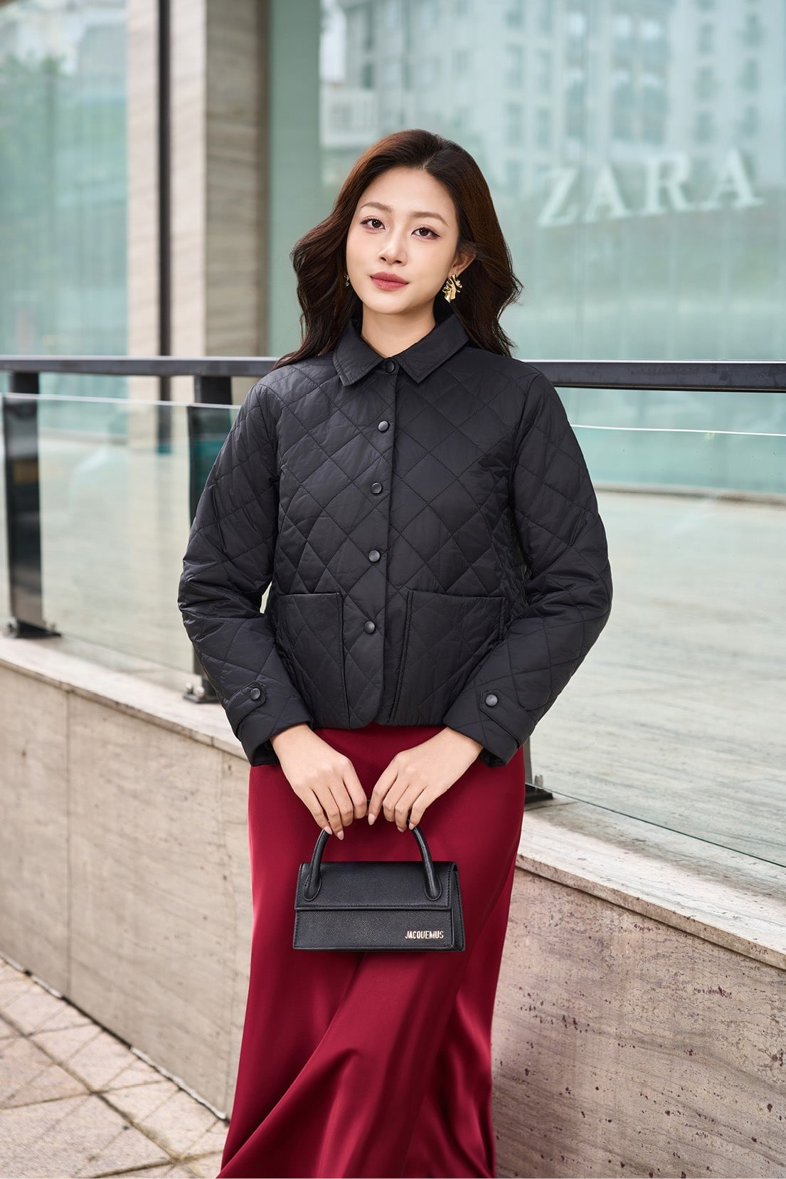 Áo khoác phao nữ dáng ngắn họa tiết chần trám, cổ đức thanh lịch - 251JWS3010