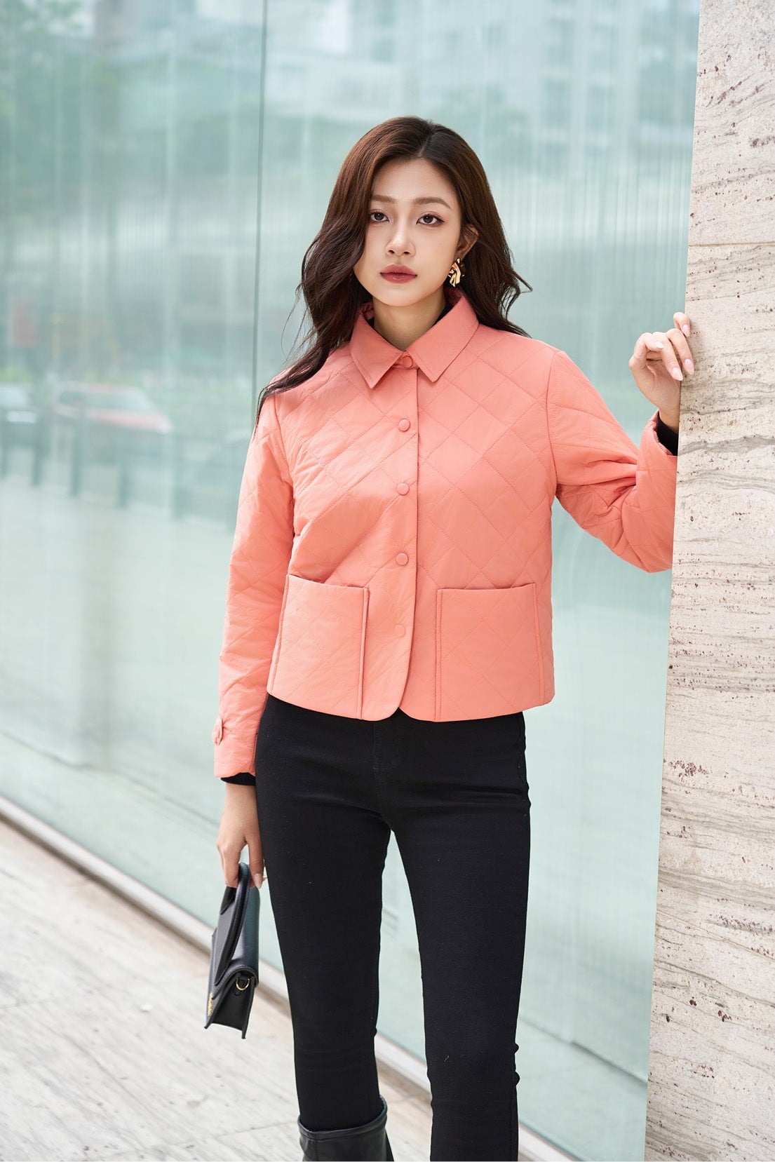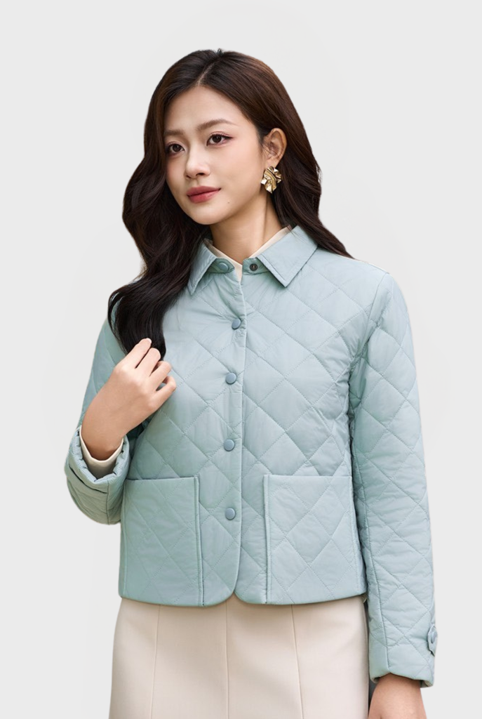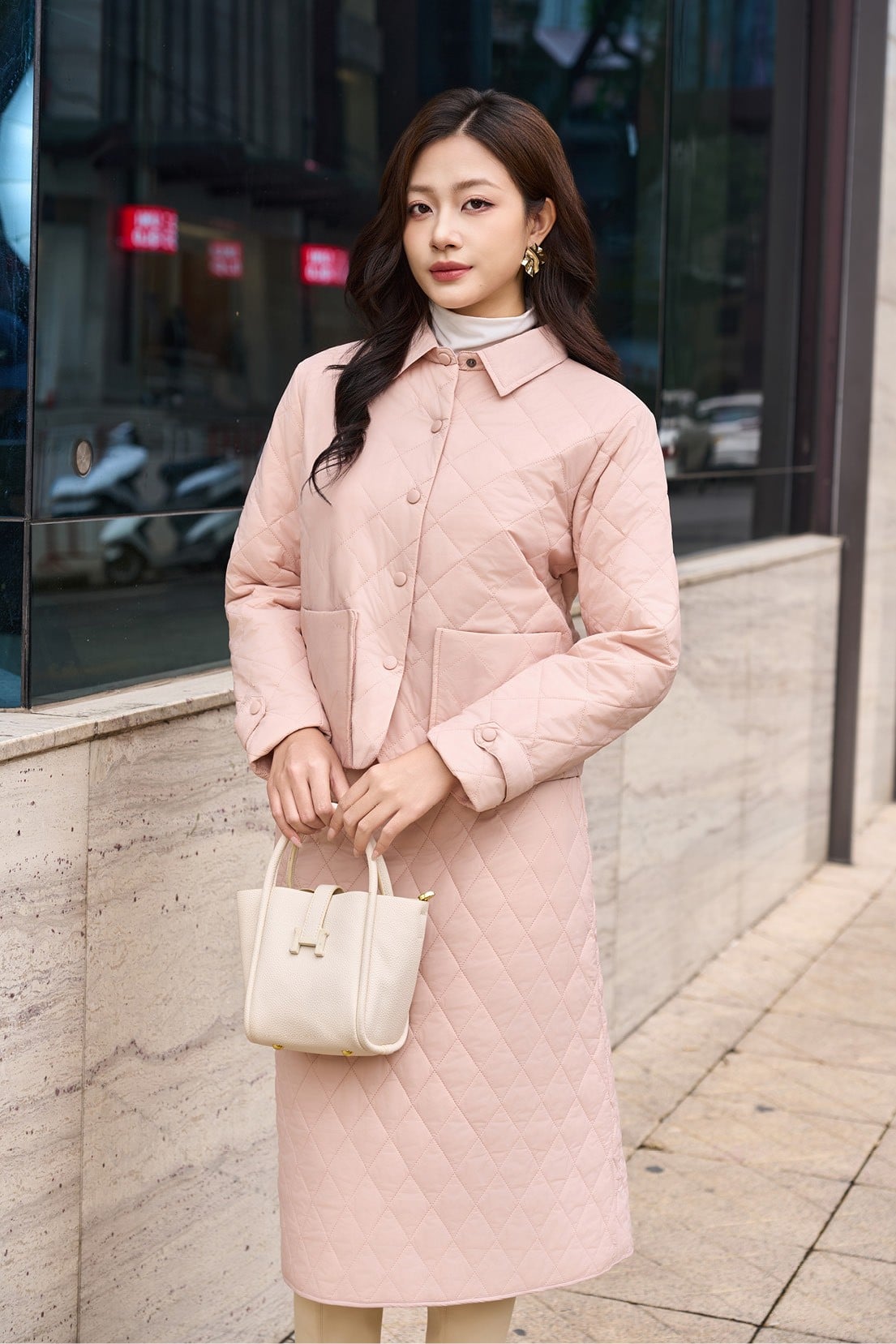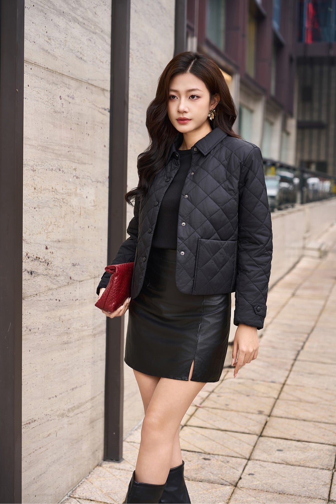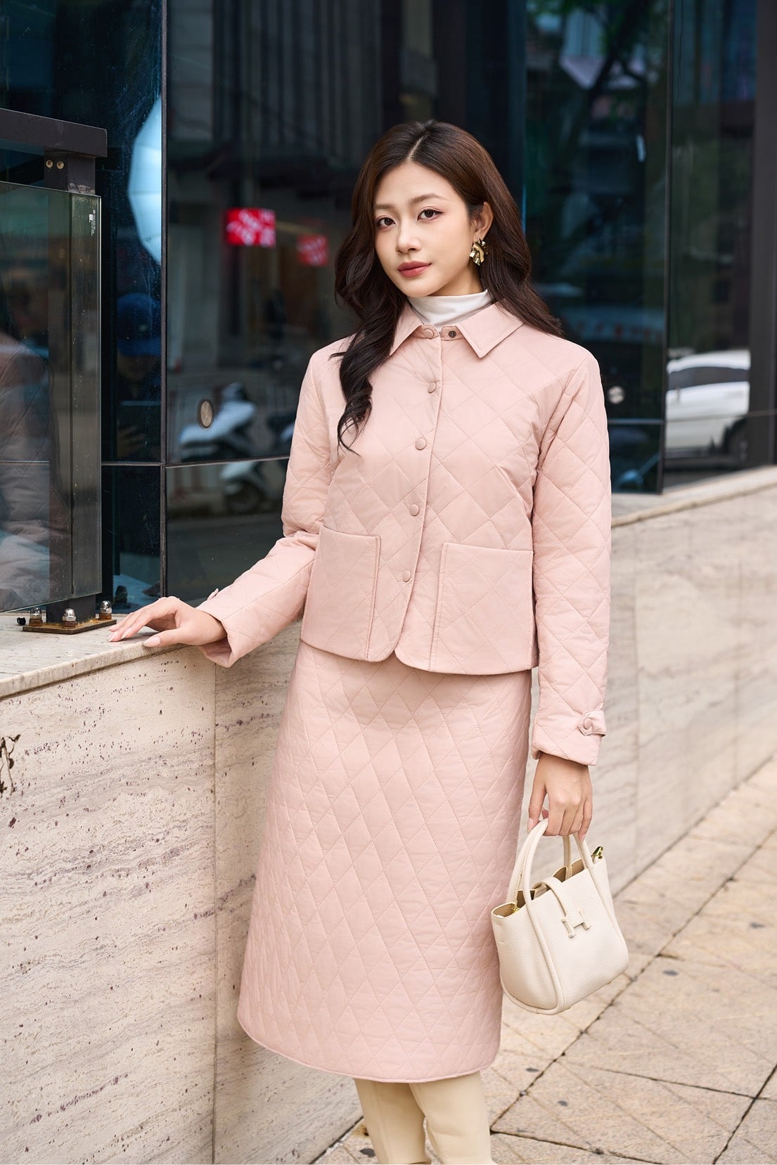 Áo khoác phao nữ dáng ngắn họa tiết chần trám, cổ đức thanh lịch - 251JWS3010
