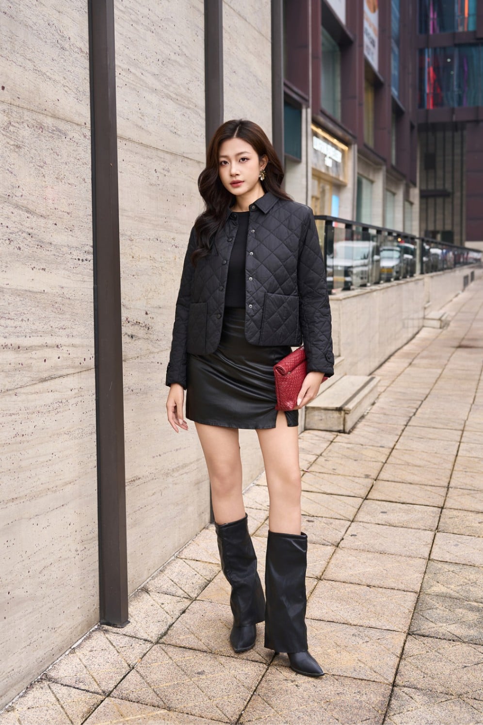 - Thiết kế: Dáng ngắn họa tiết chần trám