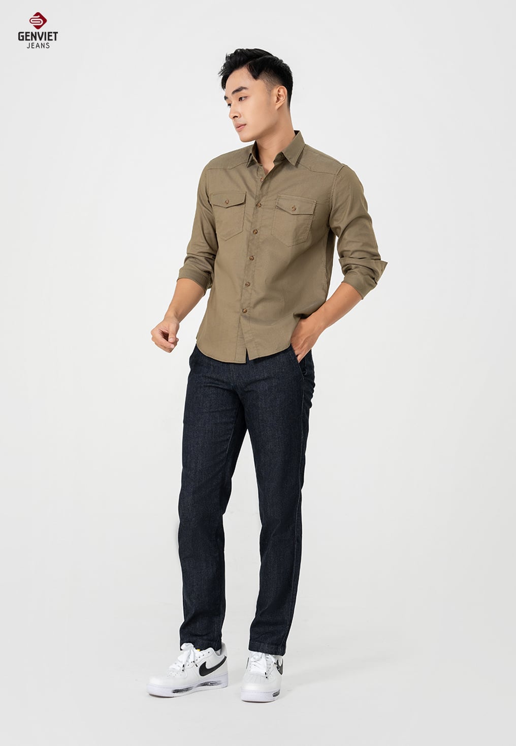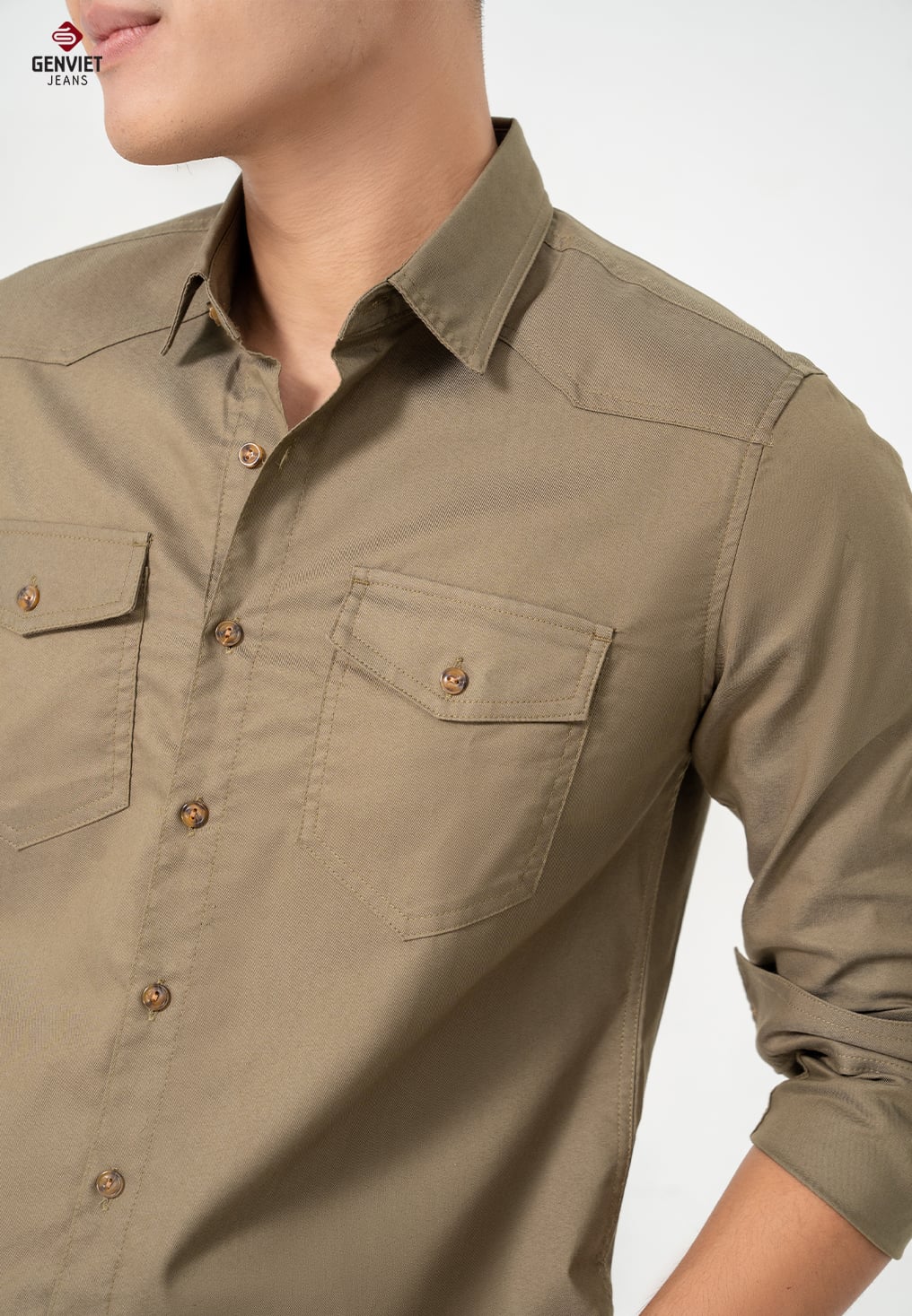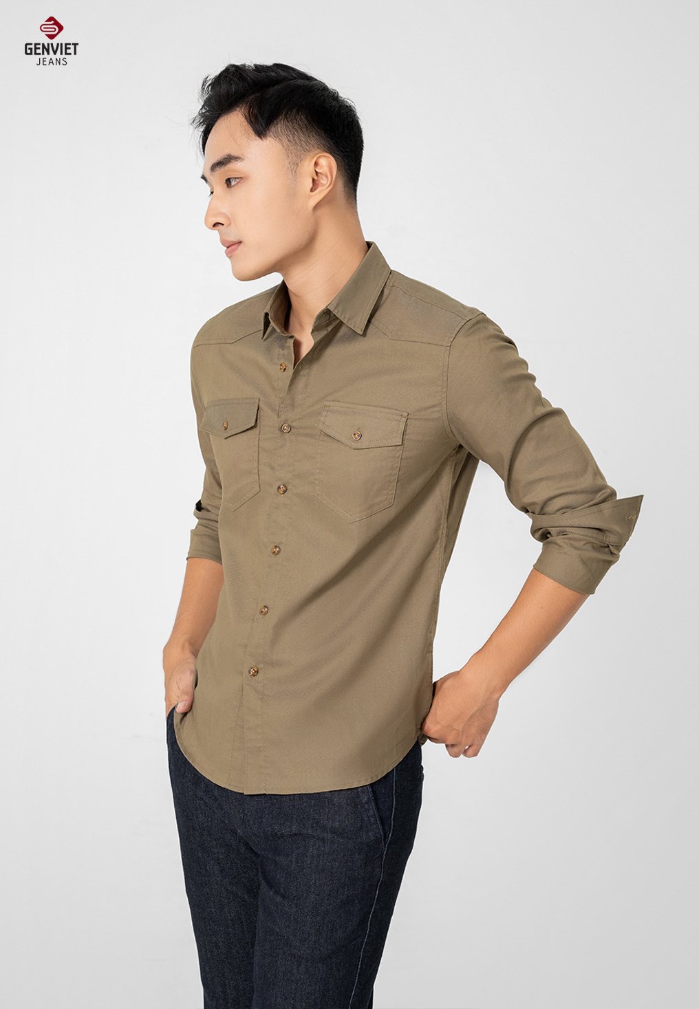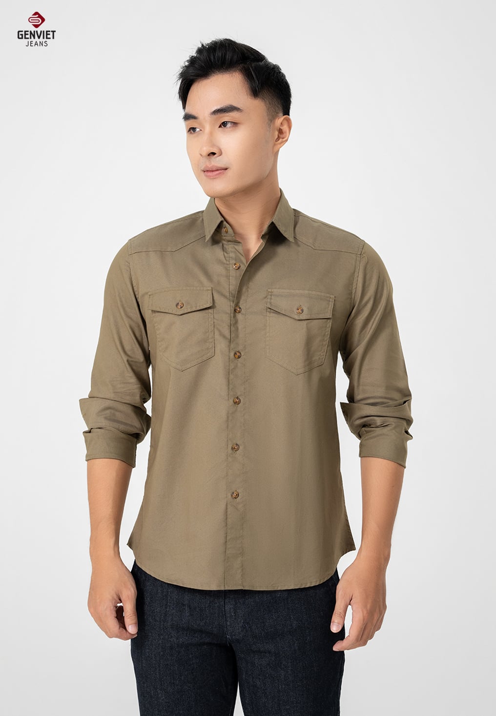 - Chi tiết thiết kế: form cơ bản, dễ mặc. Hai túi ốp ngực khỏe khoắn