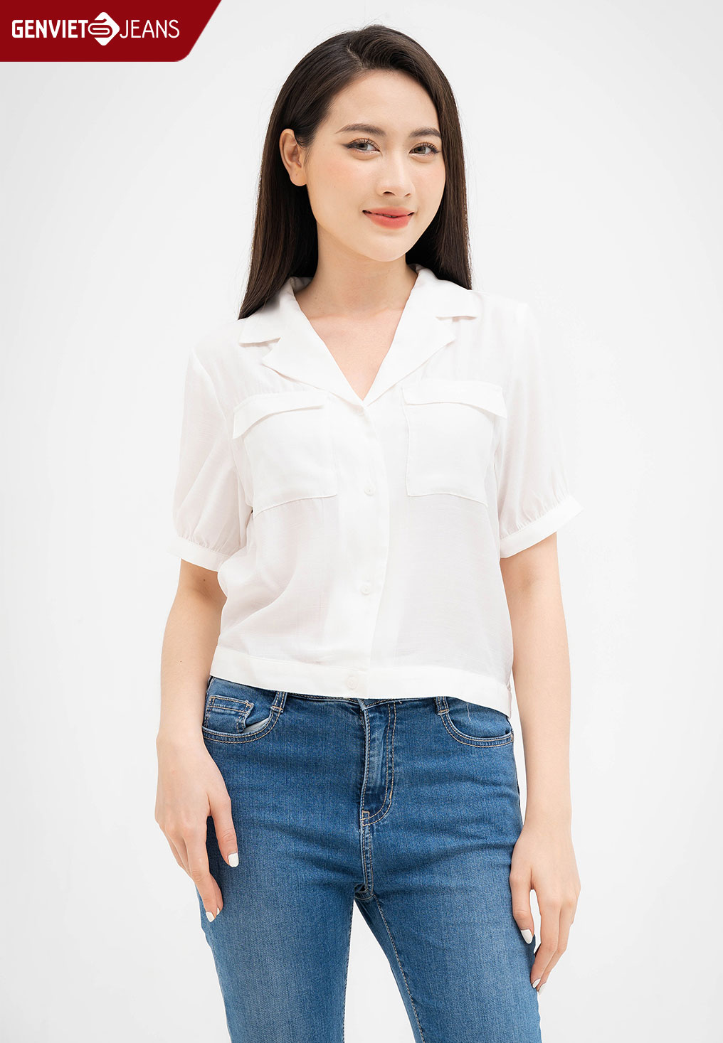 Áo Sơ Mi Cộc Tay Nữ Cotton Suông Vừa TA323C2162 Khuyến Mãi Áo Thun Cotton Denim Dài Tay