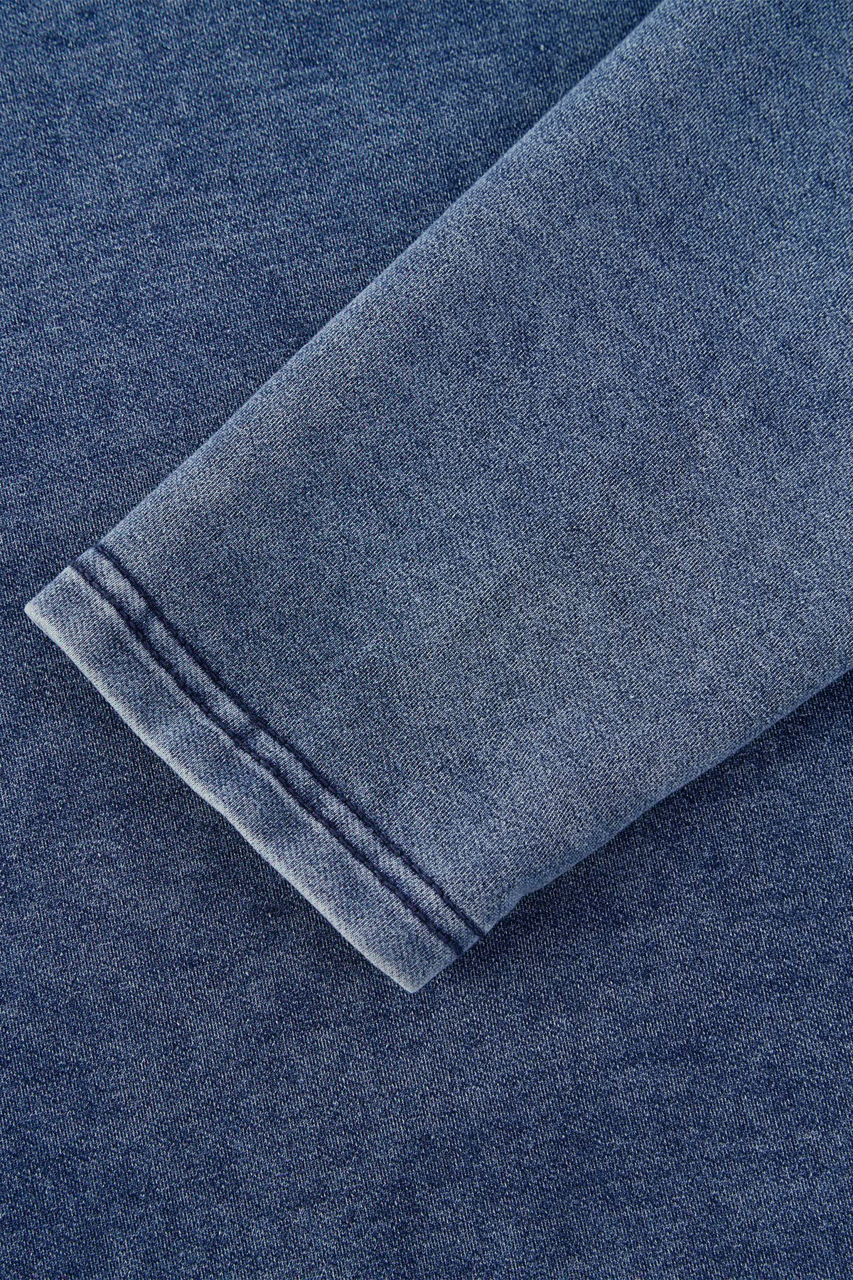- Chất liệu: Cotton Denim co giãn 4 chiều. Vải dày hơn áo thun thường, giữ nhiệt tốt.