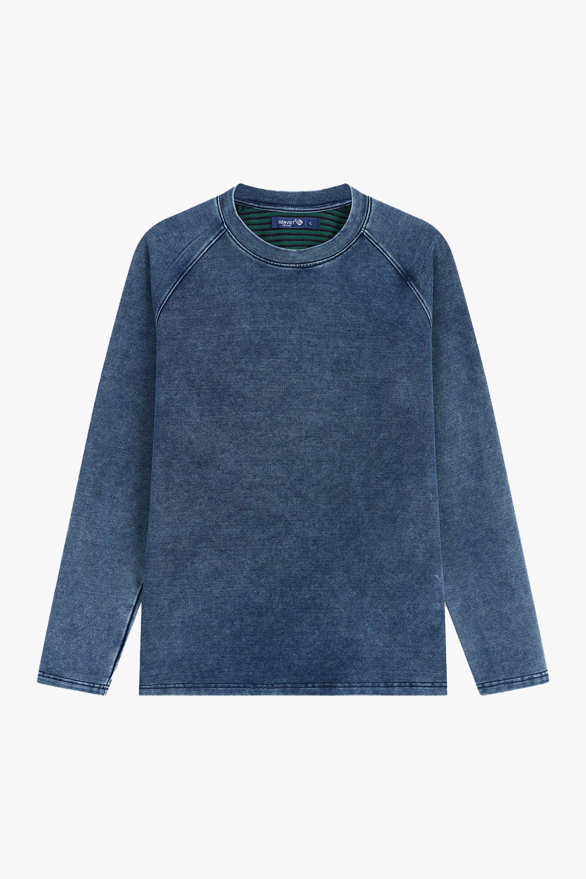 Áo Thun Dài Tay Nam - Cotton Denim Co Giãn, Hiệu Ứng Wash, Giữ Ấm Tốt