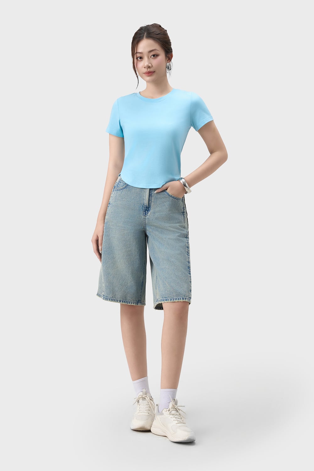 Áo Thun Nữ Cộc Tay Form Ôm Cổ Tròn - Chất Thun Tăm Co Giãn Tôn Dáng