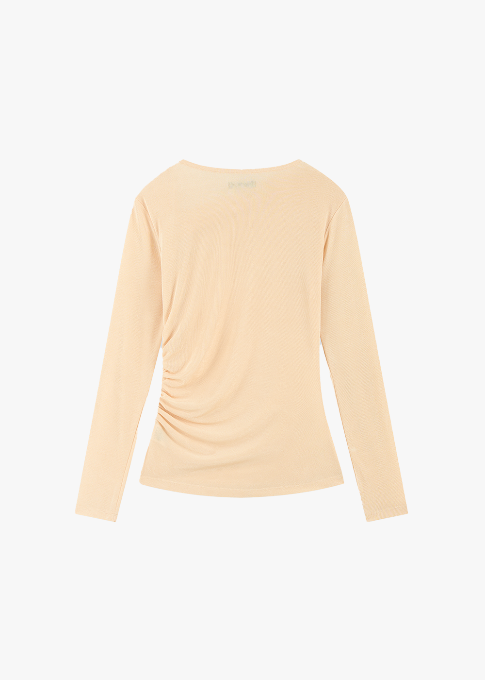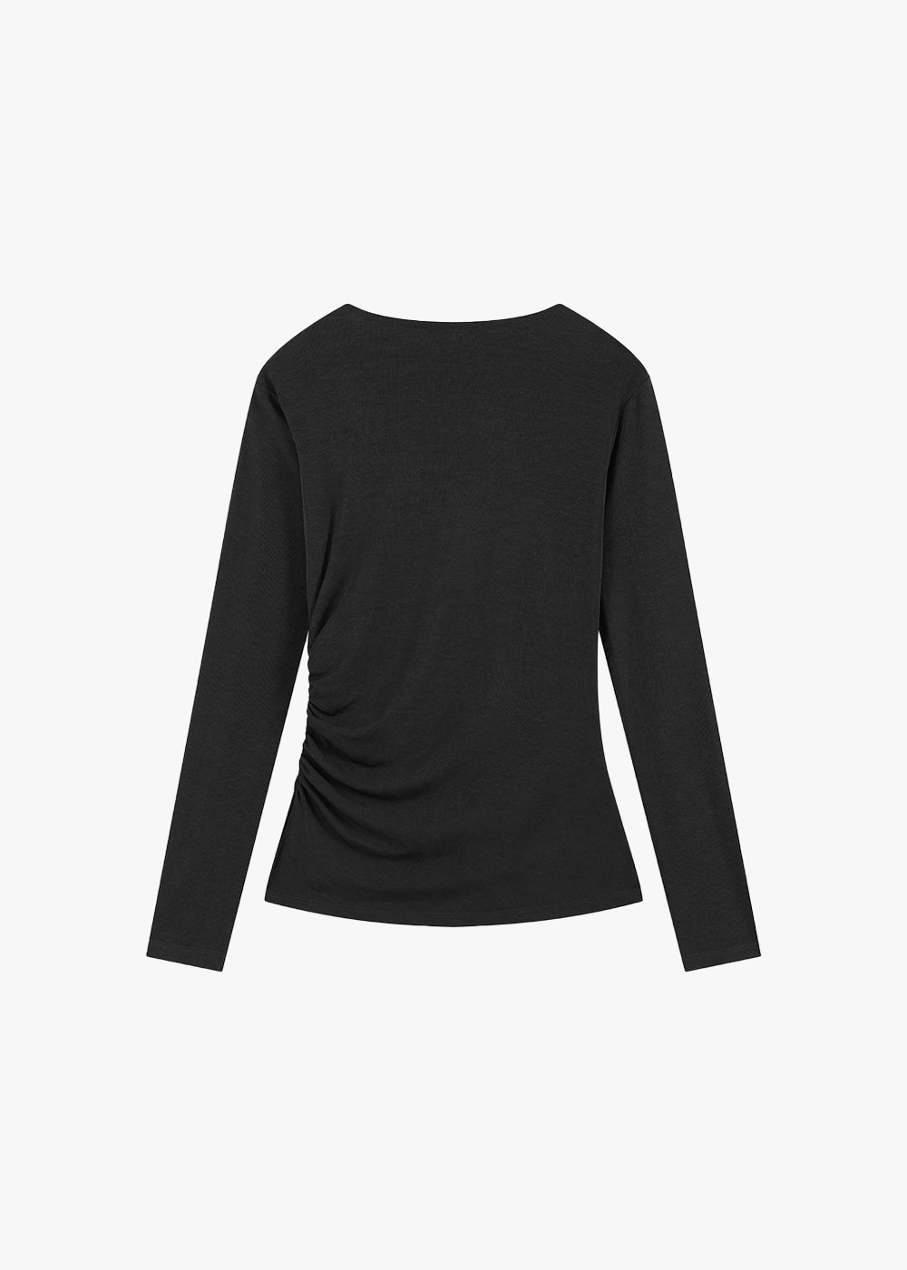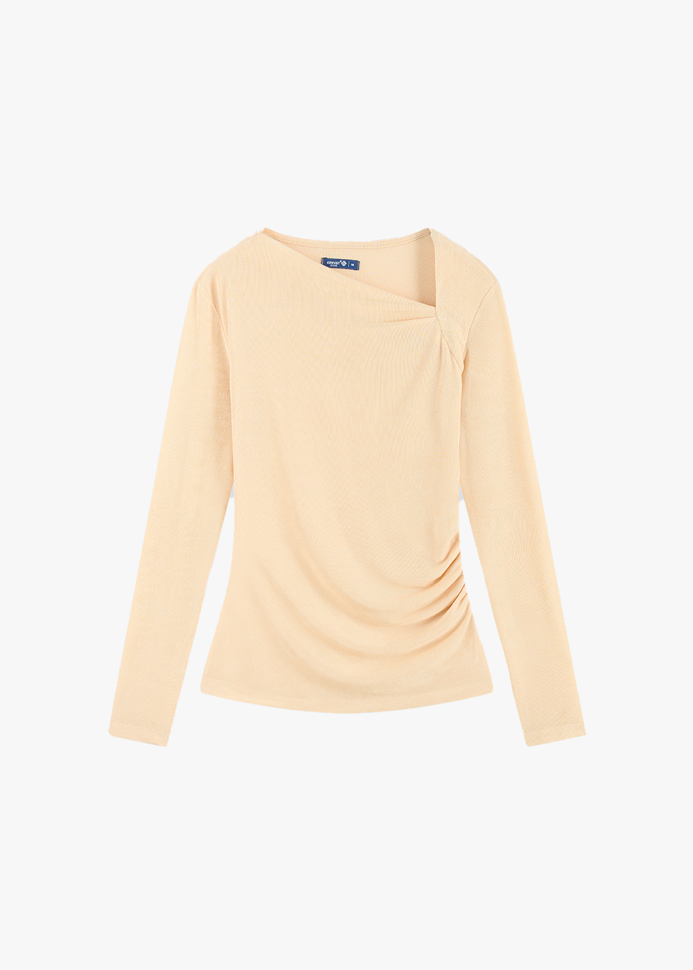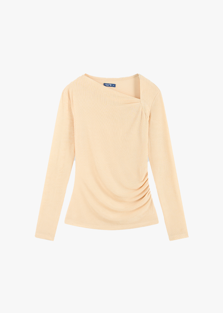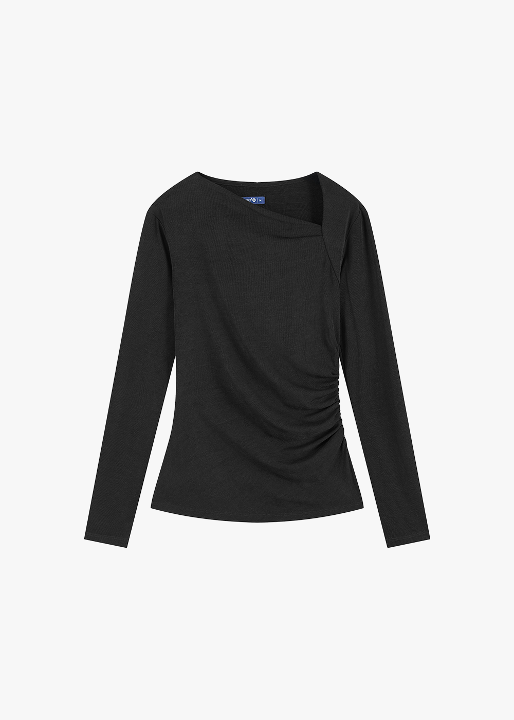 Áo Thun Nữ Dài Tay - Cổ Lệch Nhún Sườn Dáng Ôm