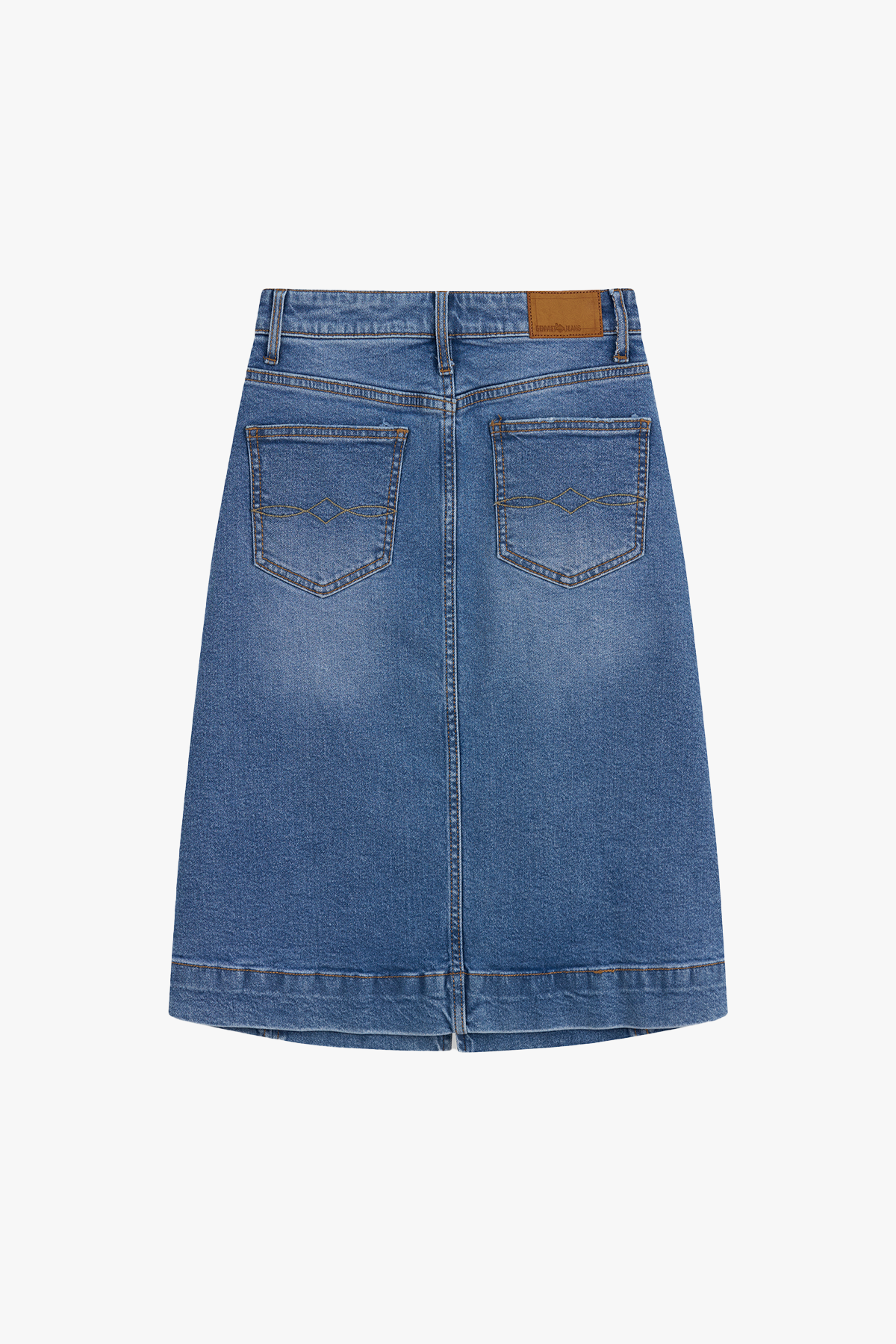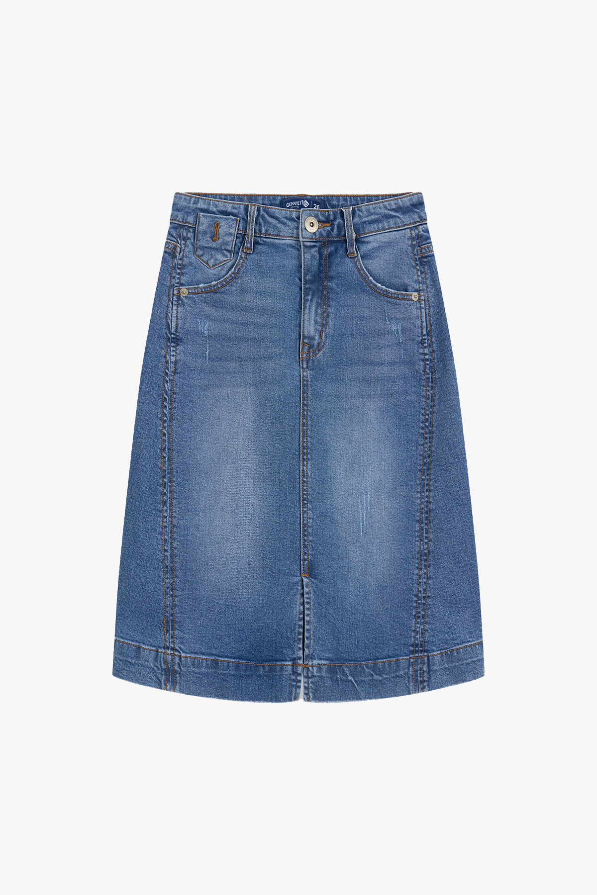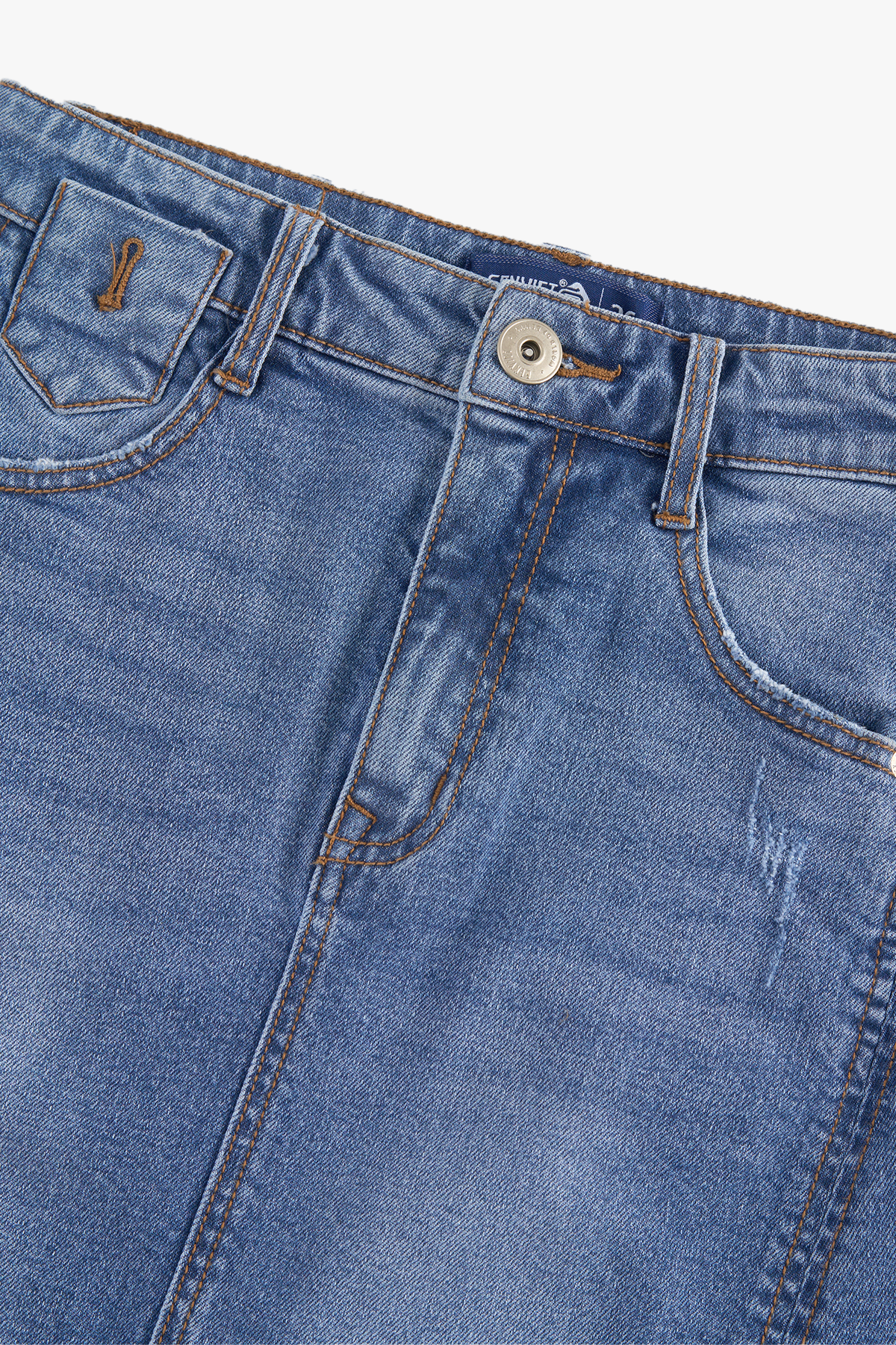 Chân váy jean dài qua gối form juyp chữ A GENVIET JEANS sở hữu hiệu ứng mài thời trang, xẻ trước dễ di chuyển, chất denim 99% Cotton – 1% Spandex co giãn nhẹ. Item chân váy bò dài giải quyết trọn nhu cầu nhờ khả năng biến hóa đa phong cách, phù hợp đi làm, đi học lẫn dạo phố.
