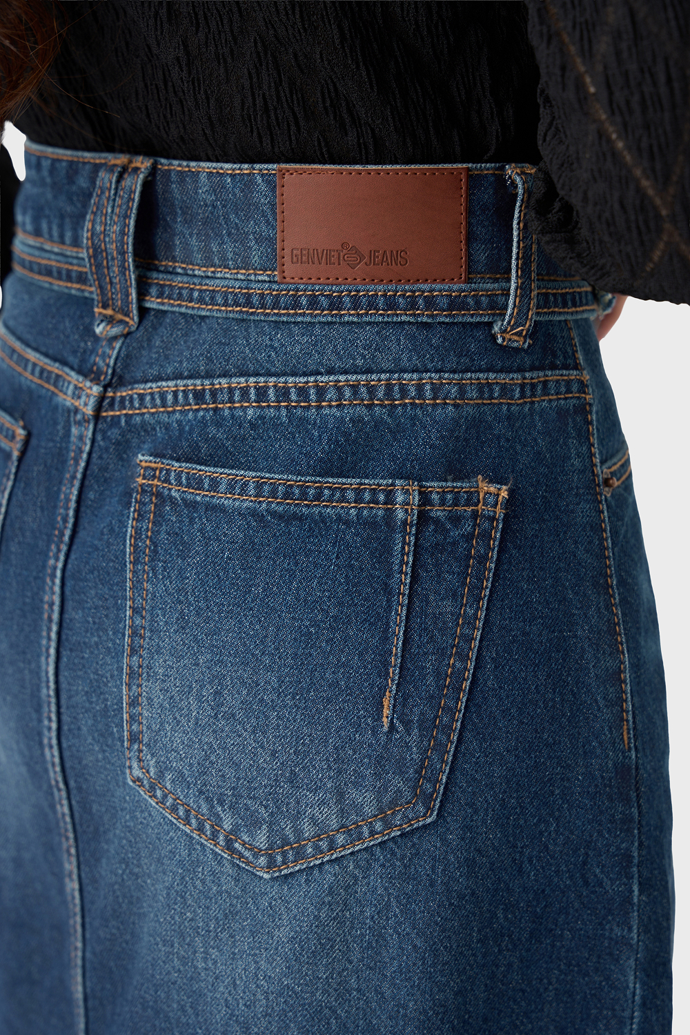 Chân váy jean ngắn nữ GENVIET JEANS với form chữ A (mini juyp) - Lựa chọn hoàn hảo cho phong cách trẻ trung, năng động. Chất liệu denim cotton 100% cao cấp, tôn eo, tạo hiệu ứng dài chân. Dễ phối với áo sơ mi, croptop, áo thun, phù hợp đi làm, dạo phố, hẹn hò. Chính hãng GENVIET JEANS.