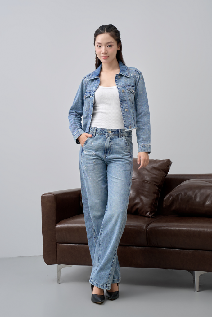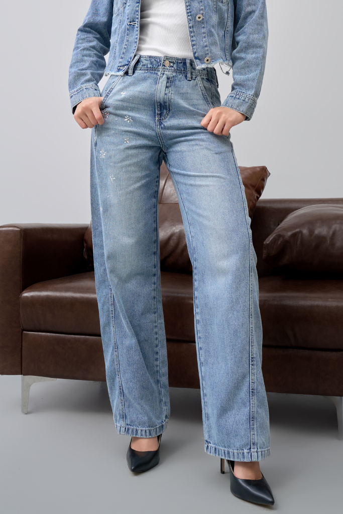 - Quần Jean Nữ Dáng Suông - Đính Đá Nghệ Thuật