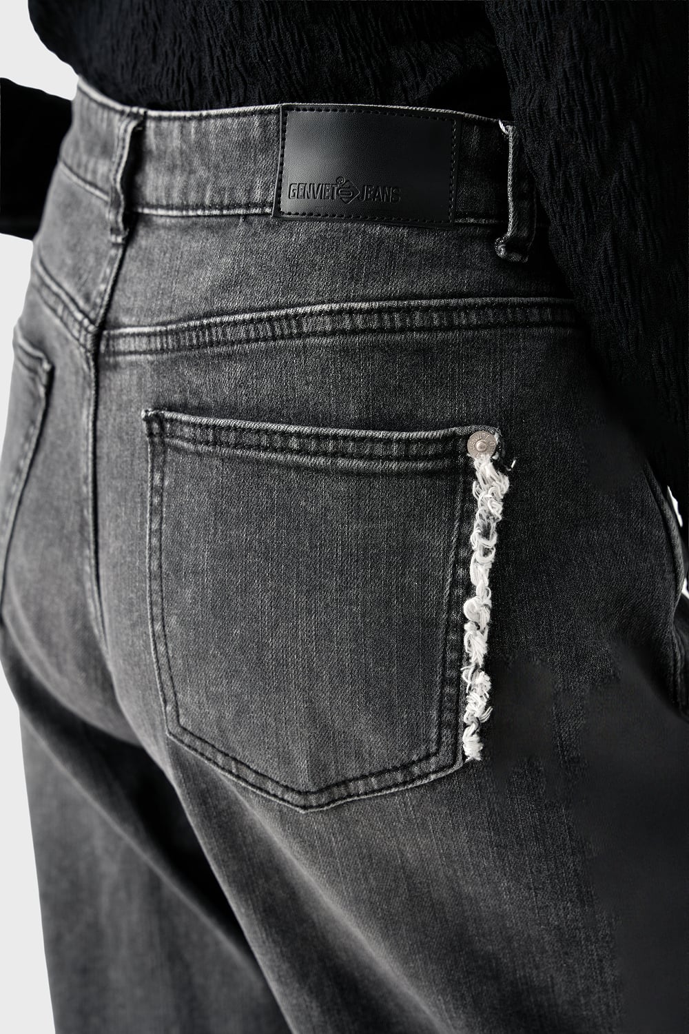 Điểm nhấn "Đắt giá": Khác với các mẫu trơn thông thường, phiên bản này sở hữu chi tiết viền túi mài rách (distressed) ở cả túi nhỏ phía trước và hai túi ốp phía sau. Chi tiết tua rua nhẹ này tạo nên vẻ bụi bặm, phóng khoáng nhưng vẫn rất tinh tế.