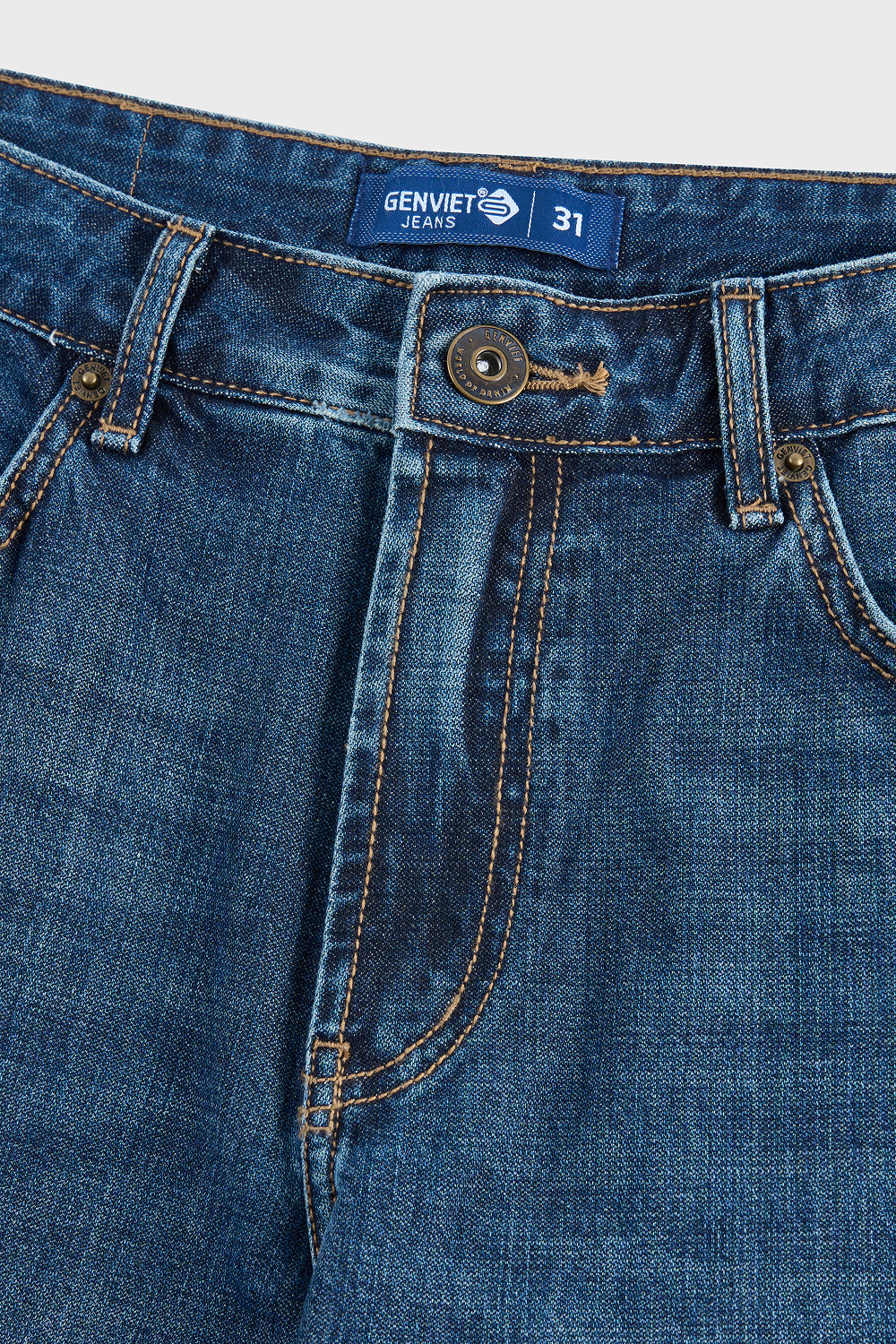 Quần sử dụng vải jean với thành phần 97% cotton. Khi mặc, vải mang lại cảm giác thoáng và dễ chịu, đặc biệt phù hợp với người hay vận động hoặc mặc quần suốt ngày dài. Cotton giúp thấm hút mồ hôi tốt, hạn chế cảm giác nóng và dính da. Độ co giãn vừa phải giúp các thao tác ngồi, đứng, lên xuống xe diễn ra thoải mái hơn, không bị căng hay gò bó.