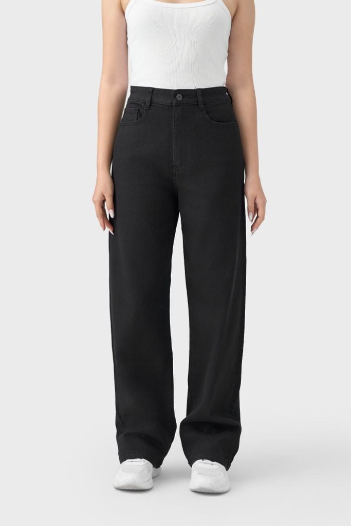 Quần jean nữ ống suông ưu tiên sự thoải mái và tôn dáng: cạp cao che bụng, phom suông vừa che đùi – hông nhưng vẫn giữ phom gọn. Màu đen trung tính giúp phối đồ linh hoạt, phù hợp nhiều độ tuổi và vóc dáng.