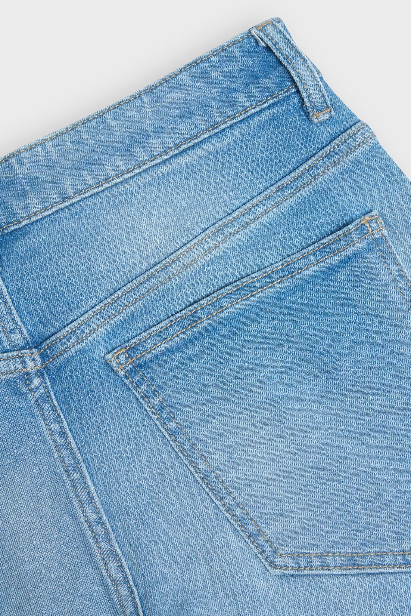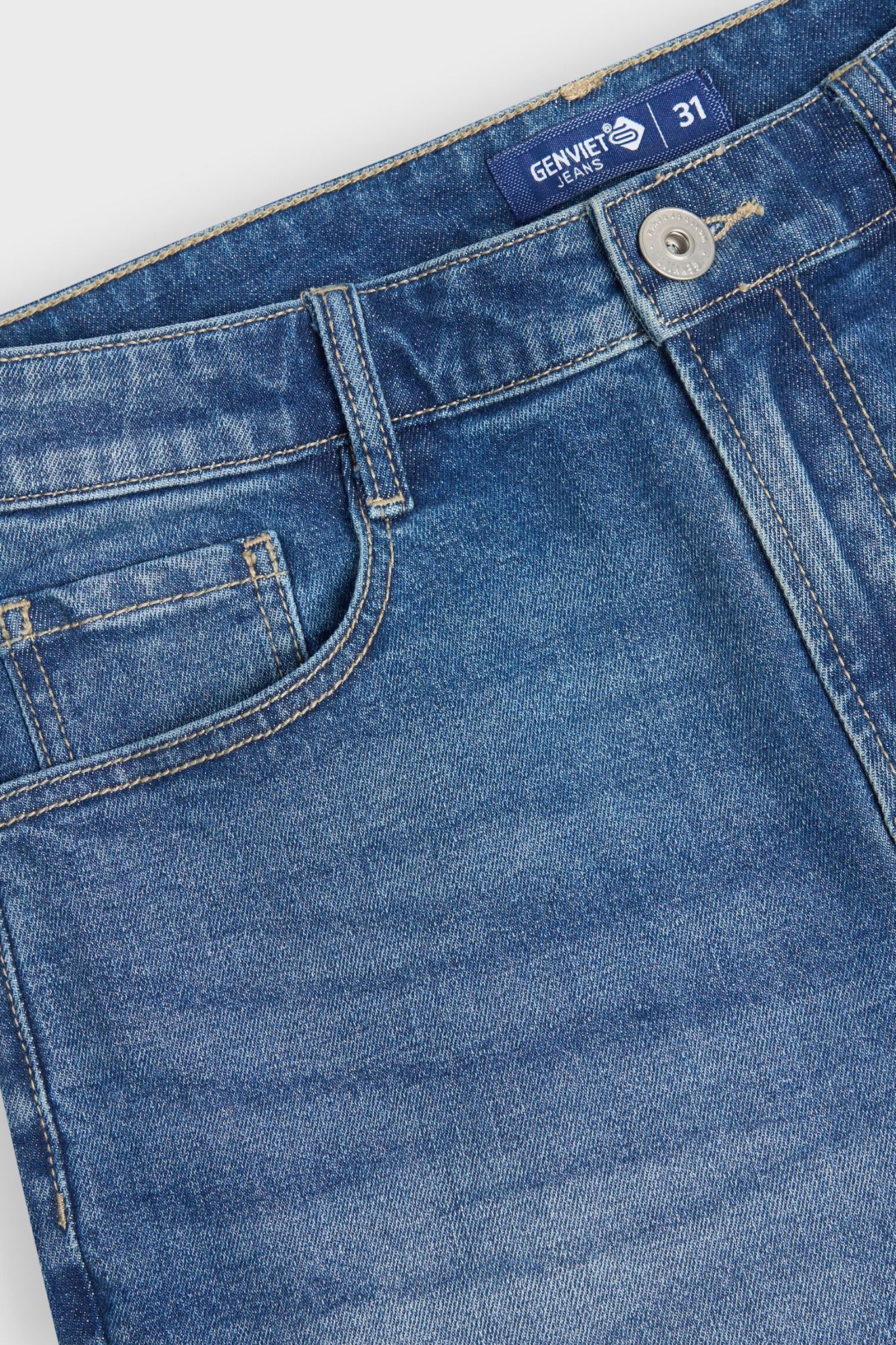 + Giặt mài trẻ trung, sử dụng hiệu ứng “râu mèo” (Whisker) và sờn rách.