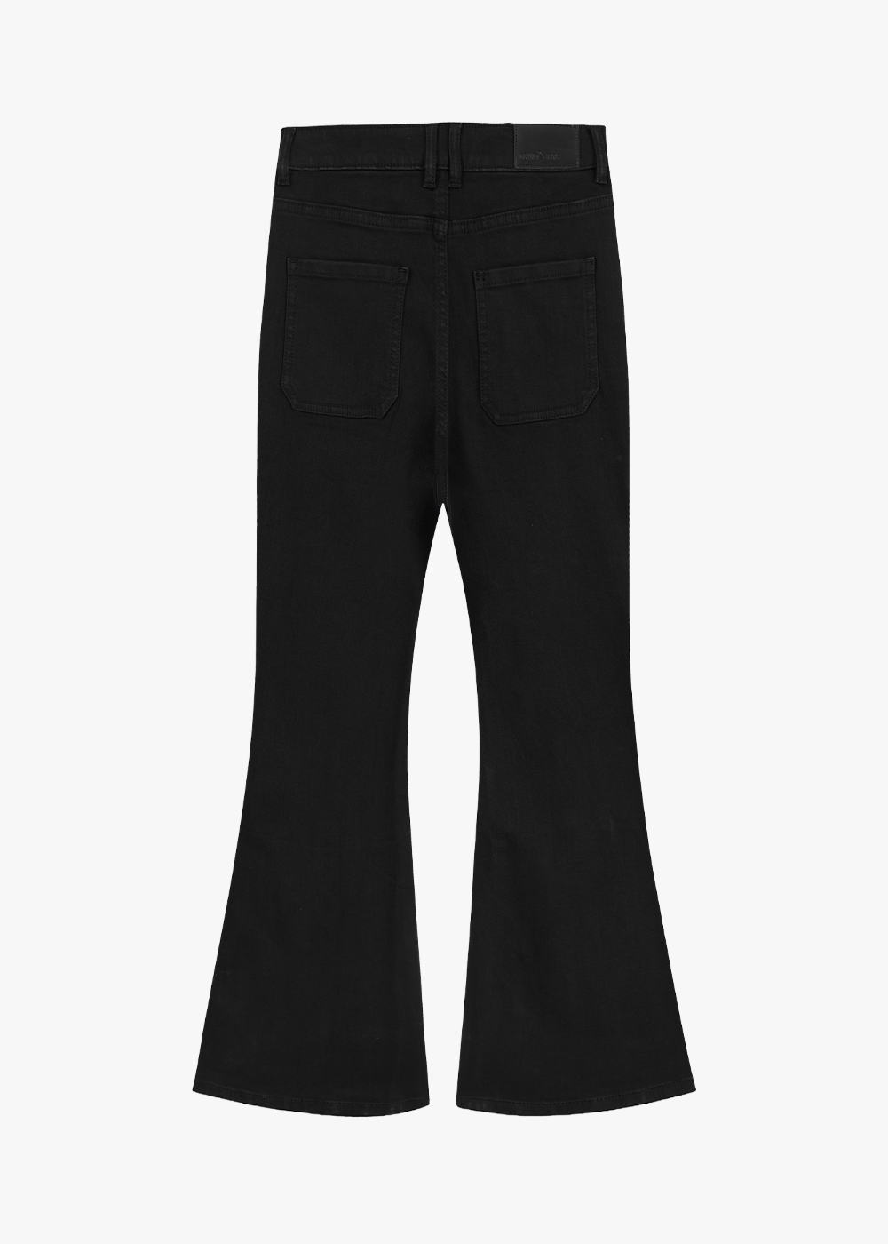 Quần jean nữ form loe màu đen, thiết kế tối giản hiện đại, giúp đôi chân thon dài và tạo hiệu ứng dáng cao. Chất liệu cotton co giãn nhẹ mang đến cảm giác mềm, thoải mái khi vận động. Đa dạng với quần jean màu trắng, đen, xanh dễ phối áo sơ mi, thun hoặc blazer phù hợp nhiều phong cách từ đi làm, đi chơi đến dạo phố