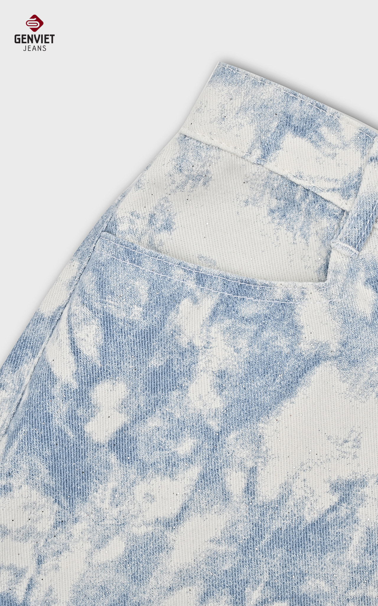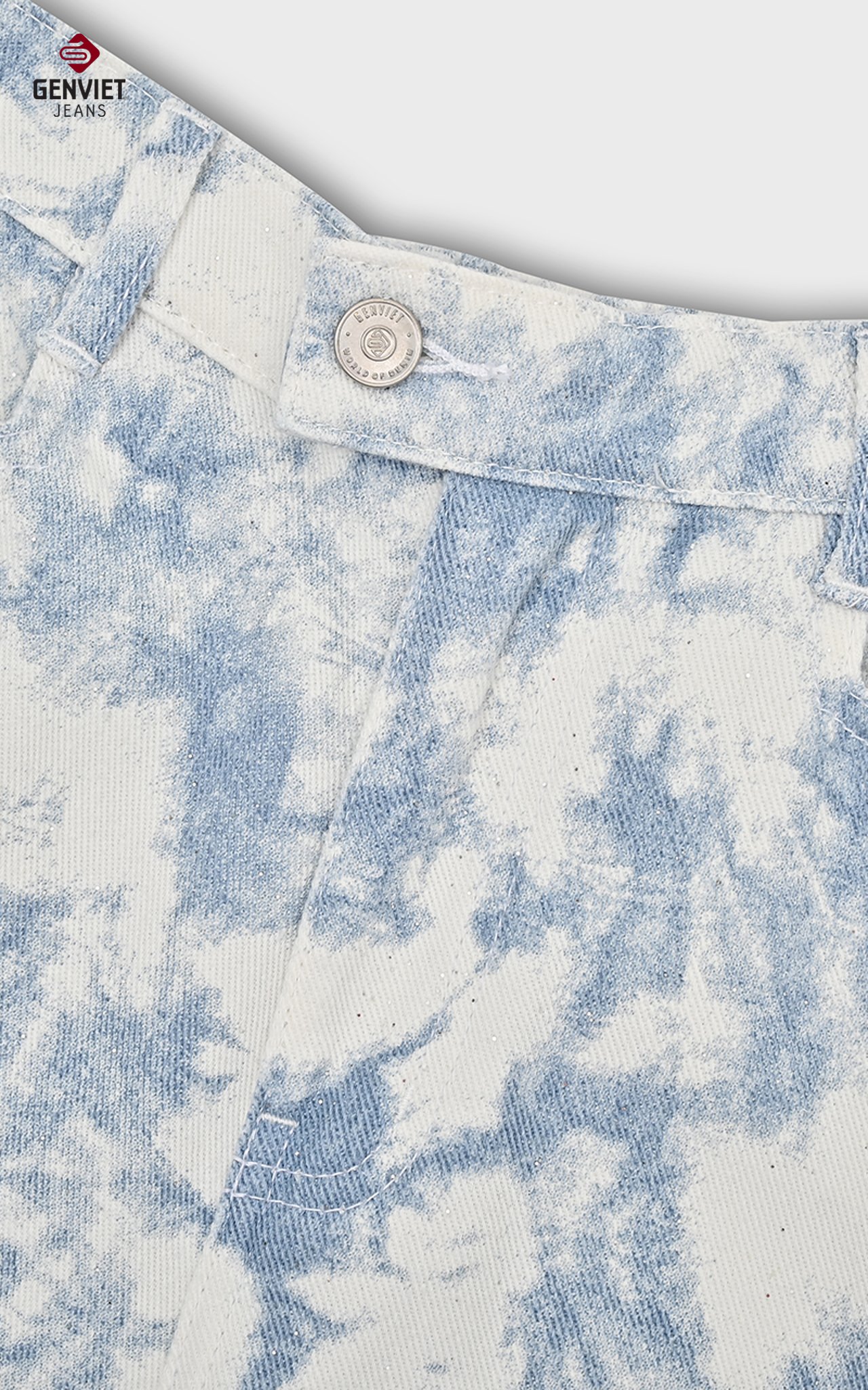 Quần jeans nữ dáng suông họa tiết loang (tie-dye) là item nổi bật trong tủ đồ hè, mang đậm tinh thần thời trang năng động và hiện đại. Thiết kế form suông thoải mái, phối màu trắng – xanh độc đáo giúp nàng tự tin thể hiện cá tính riêng.