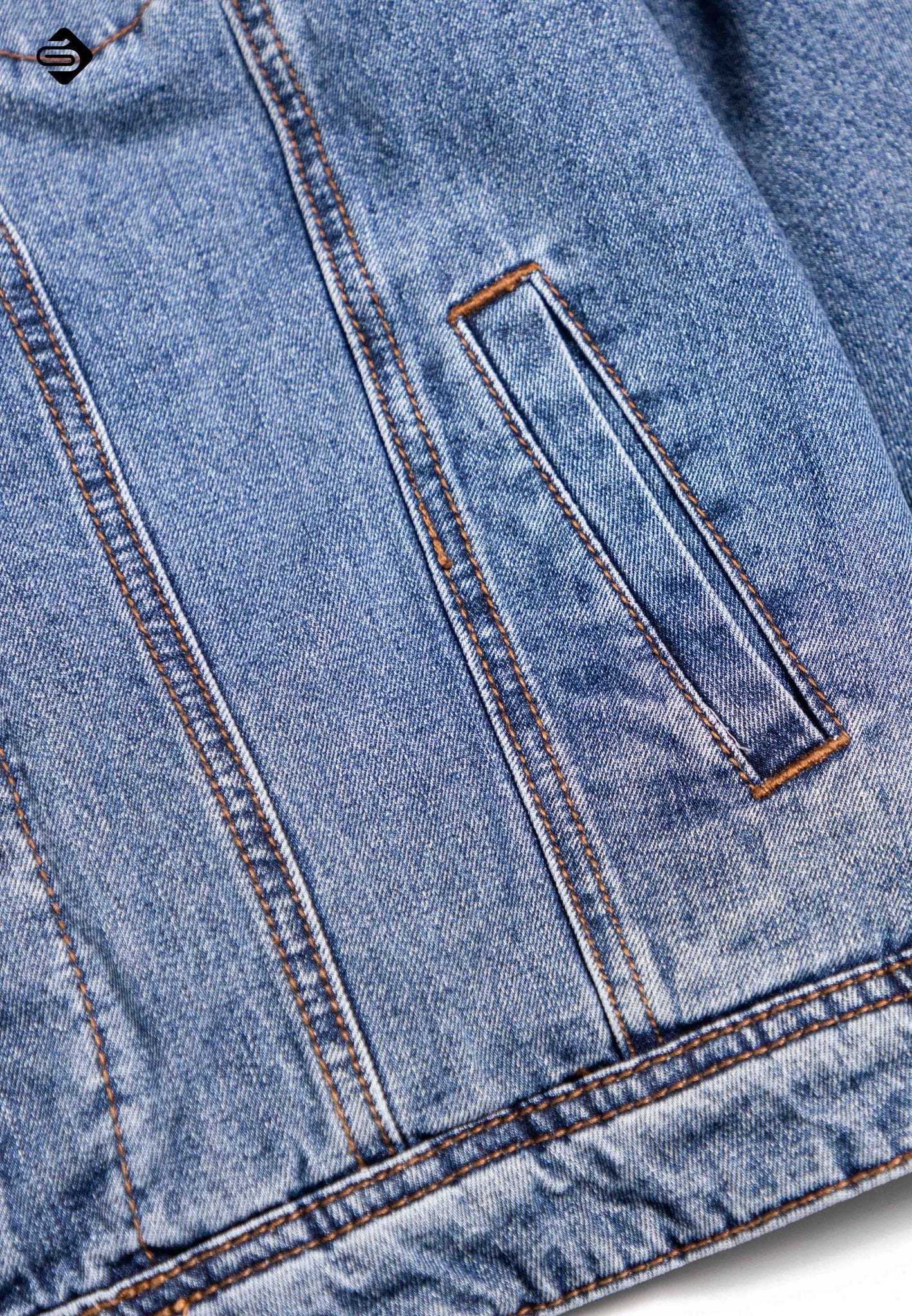 - Chất liệu: Vải Jeans slub dọc 100% cotton 10.5 OZ khổ 158 cm