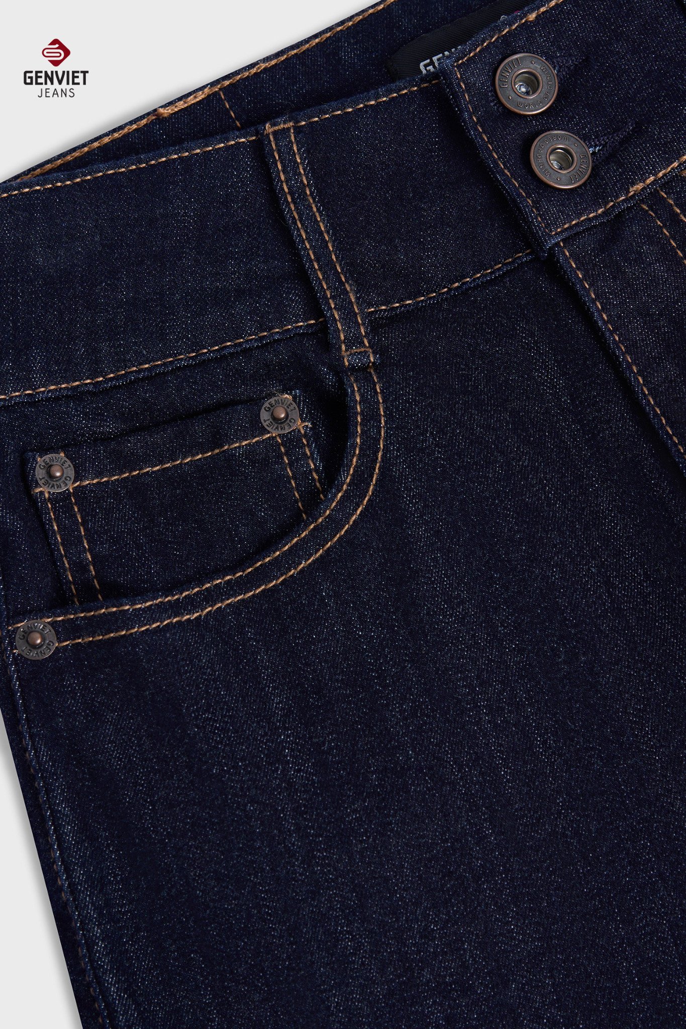 - Thiết kế: Cạp cao hai cúc cá tính, túi chéo trước, túi ốp sau. Đường may chỉ vàng nổi bật.
