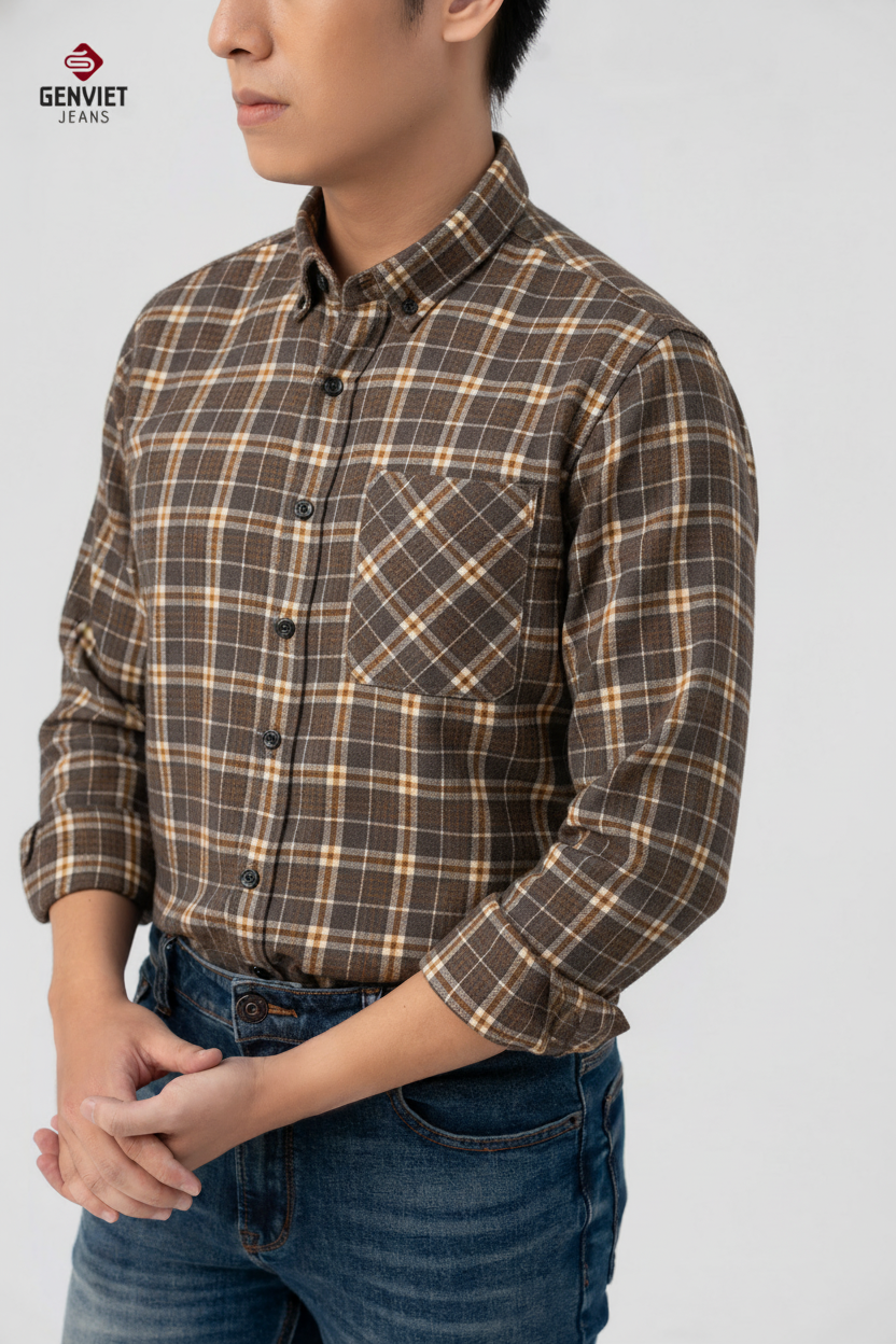 Áo Sơmi Kẻ Dạ Dài Tay Nam